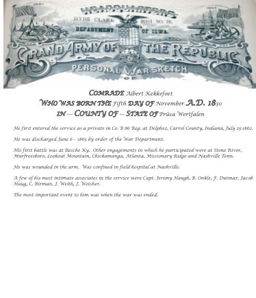 GRAND ARMY OF THE REPUBLIC PERSONAL WAR SKETCH