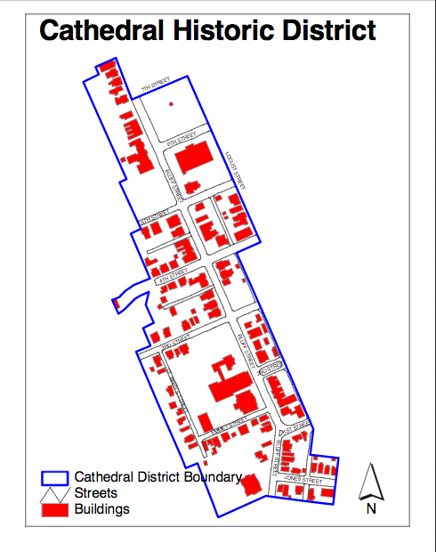 ◙there is little evidence that the Cathedral district ever included much if any commercial buildings or services, apart from the commercial zone along Locust Street.