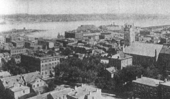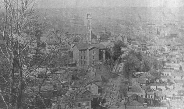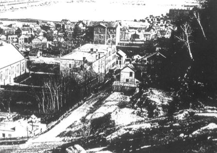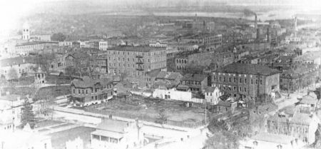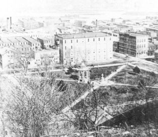 The most notable terrace projection is one that expands from the base of the West Third Street hill. This elevation contrasts markedly with the lower grade Cathedral Block. To the southeast the ground falls away gradually. A second marked terrace is the site of the present day Central School. The ground drops abruptly along the back lots along Emmett Street.