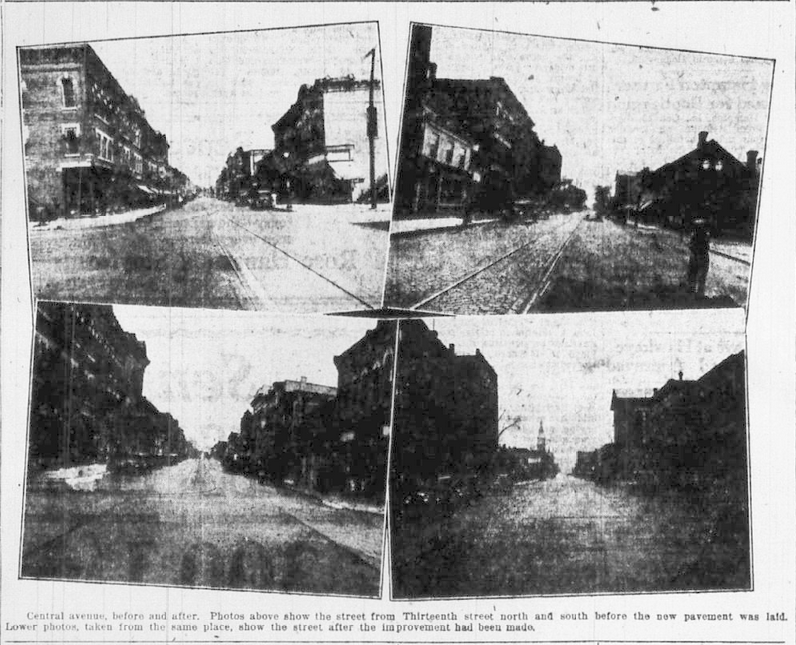 CENTRAL AVENUE MERCHANTS' ASSOCIATION. In 1929 the Central Avenue Merchants' Association (also known as the Central Avenue Business and Professional Men's Association) celebrated the widening and paving of Central Avenue with three "hospitality days." The street had formerly been 40 feet wide with a single street car track south from 13th to Third Street. After the street car company announced it would be abandoning the track south of 13th Street and the single track north of 13th Street, the merchants petitioned that the street be widened to 44 feet. The city council agreed. (1)