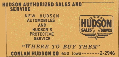 CONLAN HUDSON-ESSEX COMPANY. The 1929 and 1934 Dubuque City Directory listed 650 Iowa.