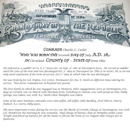 GRAND ARMY OF THE REPUBLIC PERSONAL WAR SKETCH