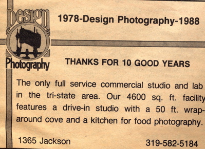 DESIGN PHOTOGRAPHY. Established in 1978, Design Photography was located in 1985 through 1993 at 1365 Jackson.