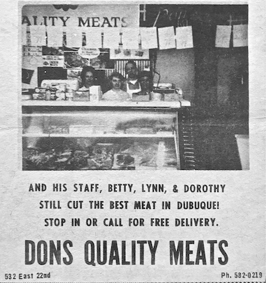 DON'S QUALITY MEATS. The 1966 through 1970 Dubuque City Directory listed 532 E. 22nd. The store was owned by Don Arthofer.