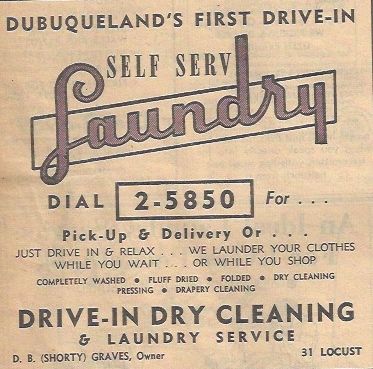 DRIVE-IN DRY CLEANING & LAUNDRY SERVICE. The 1955 and 1957 Dubuque City Directory listed 31 Locust.
