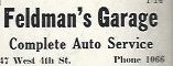 FELDMAN'S GARAGE. The 1937 Dubuque Consurvey Directory through 1942 Dubuque Classified Business Directory listed the company at 47 W. 4th.