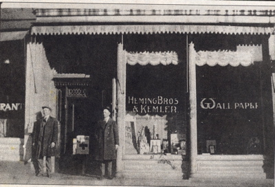 HEMING BROTHERS/KEMLER WALLPAPER AND PAINTS. Around 1917 Louis Kemler and either Joseph or George Heming started the business which was located at 326 Main St.