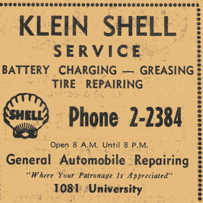 KLEIN SHELL. The 1951 through 1957 Dubuque City Directory listed 1081 University.
