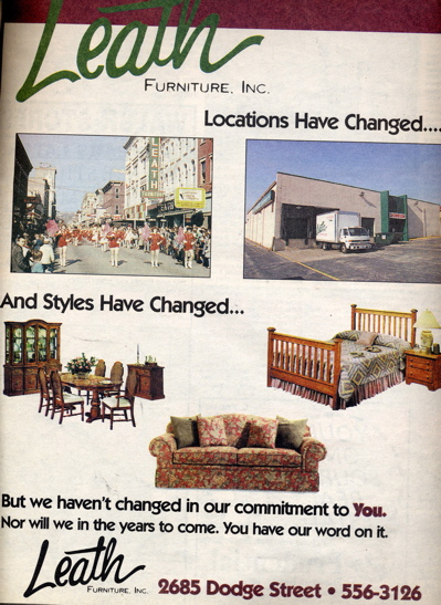 In 1974 it was called Leath Warehouse Furniture Showroom. Relocated to its Highway 20 (Dodge Street) location at 2685 Dodge, it closed in the early 2000s.