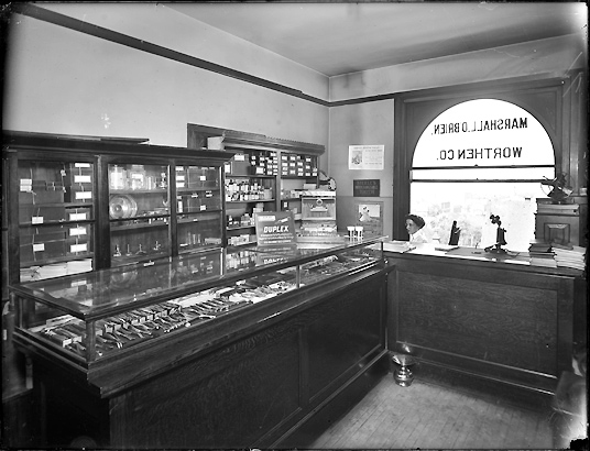 c. 1912. Photographer unknown, “[Marshall, O'Brien, Worthen Dental Supply Company in the Bank & Insurance Building],” Loras College Digital Collections, accessed April 12, 2014, https://digitalcollections.loras.edu/items/show/10.