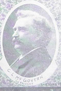 MCGOVERN, Charles L. (Concord Township, IA, Mar. 1, 1852--Dubuque, IA, Jan. 28, 1925). McGovern had been a postmaster at Holy Cross and a storekeeper before moving to Dubuque in 1893.