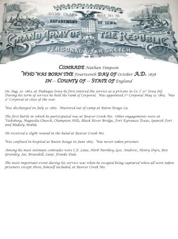 GRAND ARMY OF THE REPUBLIC PERSONAL WAR SKETCH