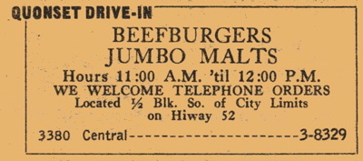 The building was actually a Quonset hut converted into a restaurant with inside and outside service. Dolter made his own hamburgers, hand-dipped onion rings, coleslaw, root beer, doughnuts and hand-packed ice cream with fresh strawberries and peaches. His marketing included being one of the few drive-ins in Dubuque with car-hops on roller skates.