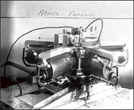 ADAMS-FARWELL AUTOMOBILES were using Farwell's motor in 1903 when one of the cars was shown at an automobile show in Chicago. M. Sequin of Paris saw the car and after returning to France built the gnome engine following the design. (5) J. W. Smith of Chicago saw the same engine and developed America's first radial engine for aircraft. He took his invention to England where it was used in the Bristol and 9BC aircraft. (6)