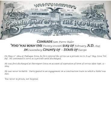 GRAND ARMY OF THE REPUBLIC PERSONAL WAR SKETCH