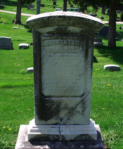 [[Image:rague.jpg|right|thumb|250px|Gravestone in Linwood Cemetery]] | |||