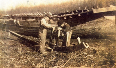 Dubuque pioneered the evolution of boats from wooden hulls to iron. In 1870 the first keel was laid for an iron vessel in Dubuque. The manufacturer, IOWA IRON WORKS, was founded in 1851 by Hammond ROUSE and Alfred TREDWAY. This first steamboat was named the "Clyde," for the home in Scotland of William HOPKINS, a builder of ironclads during the CIVIL WAR and master mechanic at Rouse and Dean, another pioneer Dubuque boat builder. The 96-foot-long Clyde, the first iron-hulled boat built for the Upper MISSISSIPPI RIVER, was the second boat built for the logging trade.