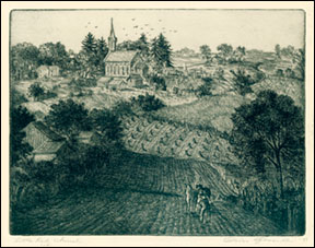 GLASELL, Christine "Criss" (Vienna, Austria, July 8, 1898---Evanston, IL, 1971) Immigrating to the United States in 1904 with her father, mother, two brothers and a sister, Criss lived first in Madison, Wisconsin and then moved to Chicago. She enrolled at the Art Institute of Chicago and studied under Wellington Reynolds. (1) She also decorated hand-painted lampshades at a nearby shop. Donald GLASELL, her future husband, worked as a line supervisor at the plant; the couple married in June 1925. Moving from Chicago, they settled in Dubuque, Iowa and became involved with the Dubuque Art Center. Both Criss and Don worked as professional artists. In addition to her Chicago art studies, Criss also received art training from her husband and was a member of 1932-33 Stone City Art Colony. Grant Wood and Adrian Dornbush served as her major advisors. (2) She became known for his regional landscapes, murals, and portraits. (3)