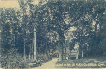 UNION PARK. Former popular park northwest of the city of Dubuque. The Dubuque Electric Railway Light and Power Company, known locally as the Allen and Swiney Motor Line Company, purchased forty acres of land from the farm of William G. STEWART on March 6, 1891. The company owners, new to the community, desired a way to publicize the use of electricity, a means of transportation they used with trolleys around the city with only limited success. The idea of a park at the end of their trolley line promised to give them the needed publicity.
