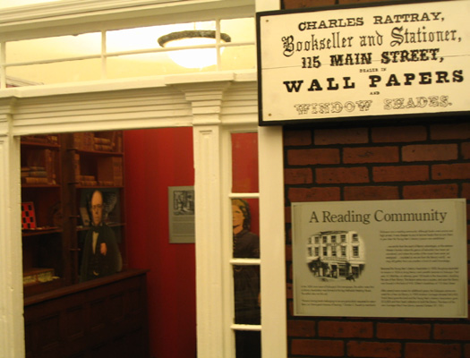 [[Image:Bookstore Recreation. | [[Image:Bookstore Recreation.JPG|left|thumb|150px|Photo courtesy: Eric Manson]]Charles died in Dubuque in 1857 of [[TYPHOID]]. Because he had no will, the estate was probated giving the re-creation a complete listing of the store's contents. Including crosses; ink stands; copy, prayer, music and copy books there were 600 titles included in the inventory. Copies of about two hundred of these books were located for the display. Sixteen of Rattray's original books are known to exist. In 1857 the entire estate was valued at $5,350 with debts of books due the estate of $800. This did not include a dozen parcels of land he owned. | ||