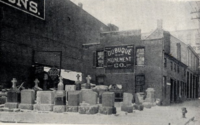 DUBUQUE MONUMENT COMPANY. Located in 1911 at 280 Eighth Street, the Dubuque Monument Company had been in business for twenty-five years. Ten skilled workmen were employed creating work in marble, stone or granite for use in sites including mausoleums. Business were received from Iowa, Wisconsin, and Illinois.
