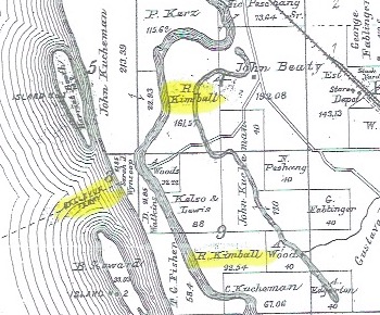 The family history, an amazing document, offered a hint to a singularly important piece of information. When the term "island" was used it was enclosed in quotation marks. This generally indicates the word enclosed is not actually what it implies. A trip to the Grant County Court House and the help of two staff members answered the question. Was the famed Kimbel Park really located on an island? The maps and descriptive information found definitely said,"No."