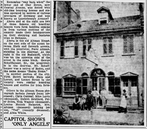 ALTMAN HOUSE. The 1909 Dubuque City Directory and the 1913 Dubuque and Dubuque County Directory stated that this business was located at 678 Clay. The same address was used in 1916-1917 and 1918.