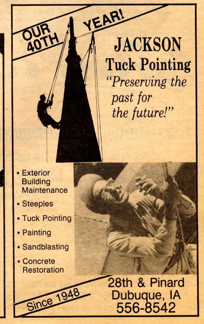 JACKSON TUCK POINTING COMPANY INC. The 1957 Dubuque City Directory listed George Jackson at 3085 Asbury.