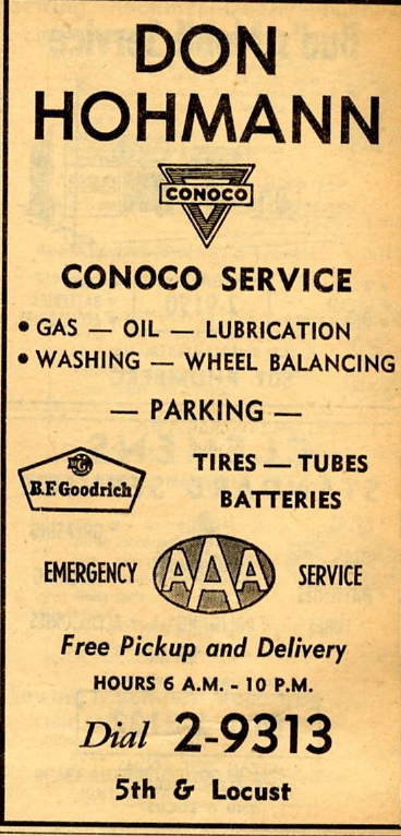 DON HOHMANN CONOCO. The 1955 Dubuque City Directory listed 5th and Locust