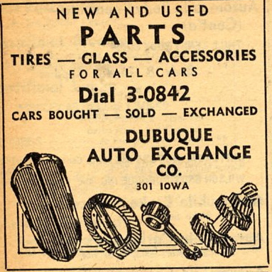 DUBUQUE AUTO EXCHANGE & SALVAGE COMPANY. The 1923 through 1941 Dubuque City Directory listed 301 Iowa.