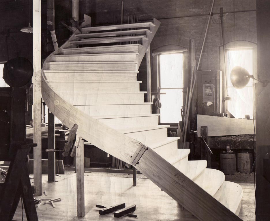 The company in 1930 was an employer of between eight hundred and nine hundred people. (5) The seven company buildings covered five city blocks. Each of the buildings, except for three warehouses, were connected by bridges that crossed over the streets. At one time described as the largest lumber shed in the world, one of the structures was the largest building in Dubuque until the development of the JOHN DEERE DUBUQUE WORKS. In 1930 it easily stored 6 million feet of lumber. (6) Christian Loetscher while attending the St. Louis Exposition in 1904 bought forty huge timbers when the exhibition buildings were being dismantled. These timbers, each 13 by 11 inches and up to sixty feet in length, were used in the construction of the building. Thirty-two were placed around the perimeter of the cupola while eight were spaced at intervals along the center of the building.