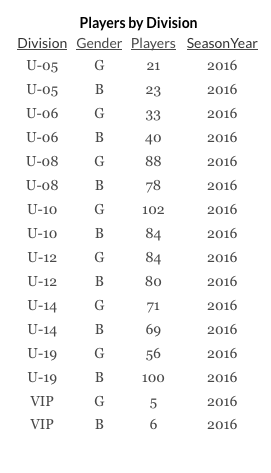 In 2000 the organization involving 2,000 people and 150 teams used seven field at the DUBUQUE SOCCER COMPLEX, six fields at McAleece, and two fields at HOOVER ELEMENTARY SCHOOL. Each participant plaid $45 for the 10-week season which included insurance and a uniform. Remaining funds were invested in field maintenance and supplies. In 2019 the mailing address was AYSO-Region 419; 2615 Dodge St. Ste.2; Dubuque, Iowa 52003. (3)