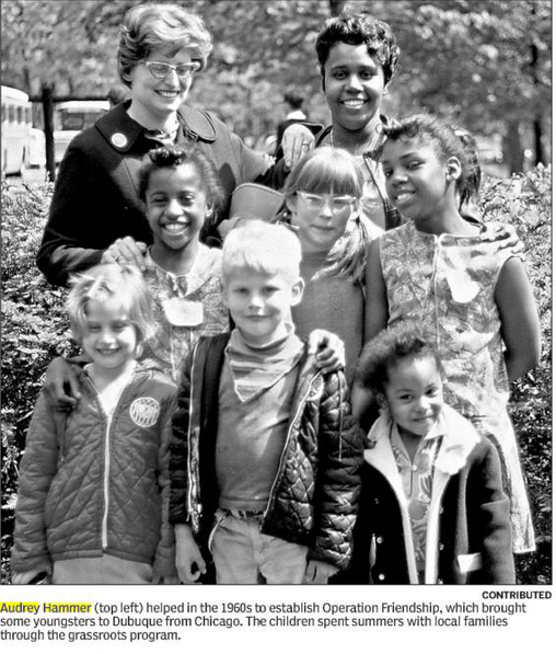 In 1965, Audrey helped organize a program called "OPERATION FRIENDSHIP," which bused young black children out of the rioting neighborhoods in south Chicago to spend the summer with families in Dubuque. (3) That is how she came to have a third "daughter" named Claudia Clayton Bodley, who came and stayed every summer for seven years.