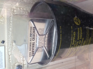 The first yellow-and-black civil defense fallout shelter signs were posted on December 5, 1962 on the doorways to official fallout shelters in Dubuque buildings. (18) The largest natural fallout shelter was located near Clayton, Iowa. Established in a silica mine, the shelter was stocked in 1963 with 500,000 pounds of supplies including 220,104 pounds of survival crackers, 154,000 gallons of water, and 881 medical kits. It was estimated that 44,016 people could be supplied for two weeks. The figure could be raised to 78,000 with a system of forced air ventilation. (19)