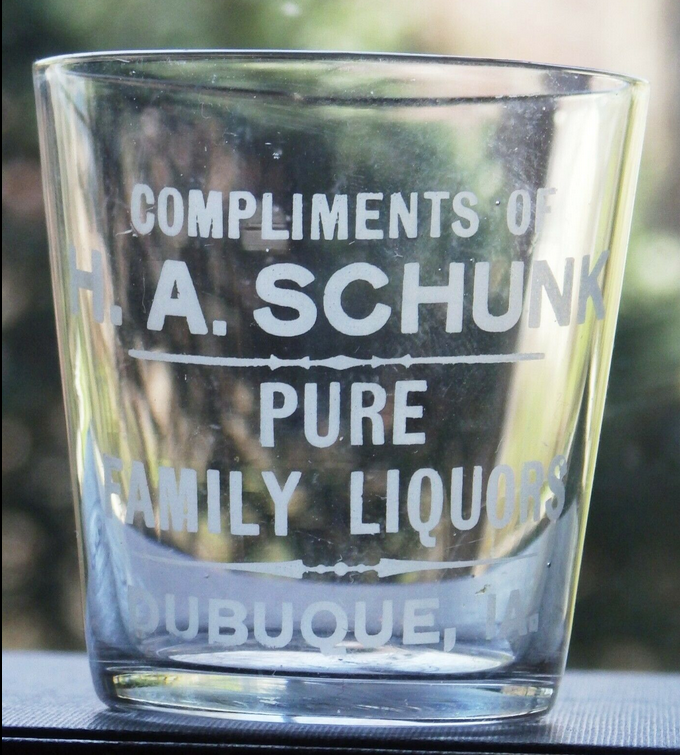 H. A. SCHUNK, Wine & Liquor. Henry A. SCHUNK, a Dubuque MAYOR, opened his wholesale and retail liquor store in 1896 at 61-69 8th. In 1906 the H.A. Schunk Company was established with M.F. Schunk as president and L.M. Cunningham as secretary. The business was located in the same place with the addition of a tavern and insurance agency.