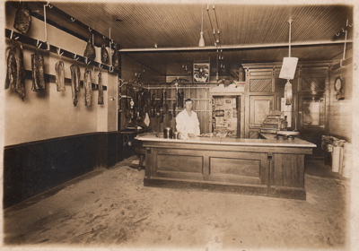 Chris Weidemann at his butcher shop. A general store was on the other side with a dance hall above both. The building was still standing on the north side of the road in Asbury in the 1960s. He might well have had the first convenience store in the area. Photo courtesy: Bill Loney