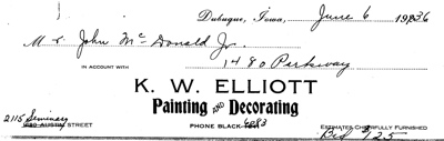 Kenneth W. ELLIOTT. The 1939 Dubuque City Directory through 1948 Dubuque Classified Business Directory listed 2115 Seminary.