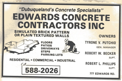 EDWARDS CONCRETE CONTRACTORS INC. The 1964 Dubuque and City Directory listed Barony Woods.