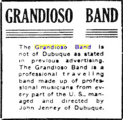 1. "Grandioso Band Forms Orchestra," Dubuque Telegraph-Herald, June 23, 1920, p. 7
