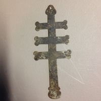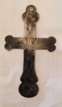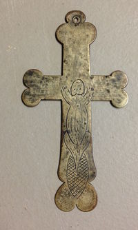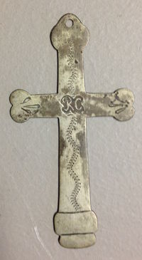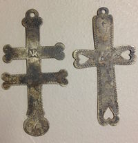 Associating pieces of trade silver to a certain historical date or narrow time period is very difficult. Most of the artifact pieces are dated by their makers' marks, and makers generally produced items over several decades of their career. Generally the more basic the silver piece, the earlier the time period. The simpler rings - with few or no piercings, the crowned or weeping hearts, the plainest crosses, and nosebobs - are the ones which date to the early to mid 1700s although these designs were not necessarily dropped in favor of the more ornate work. The more elaborate pieces with fancy-shaped or multiple cutouts were generally not produced until the late 1700s to 1800s. (9)