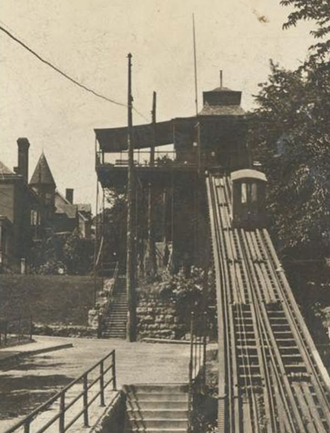The original 11th Street Elevator looked much different due to its two grades. The track was later lowered to create a single grade for the elevator.