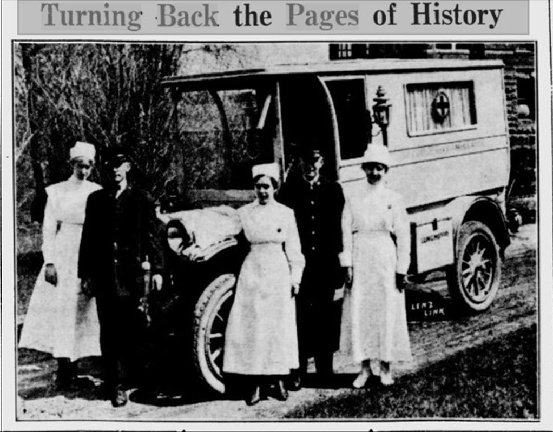 In 1916 the city decided to buy its own rig after a man whose legs had been run over by a train had to wait a long time waiting for service. According to the story, the ambulance driver wanted his cash first before starting out. (3)