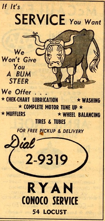 RYAN CONOCO SERVICE. The 1957 Dubuque City Directory listed 52 Locust.