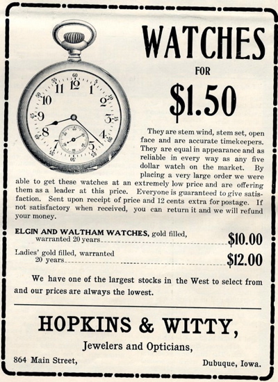 HOPKINS AND WITTY. Jewelry store. Hopkins and Witty was started in 1896 by L. S. Hopkins and Joseph Witty who had been employed by the A. Knight Jewelry Company. They operated their business for twenty-five years at 864 Main.