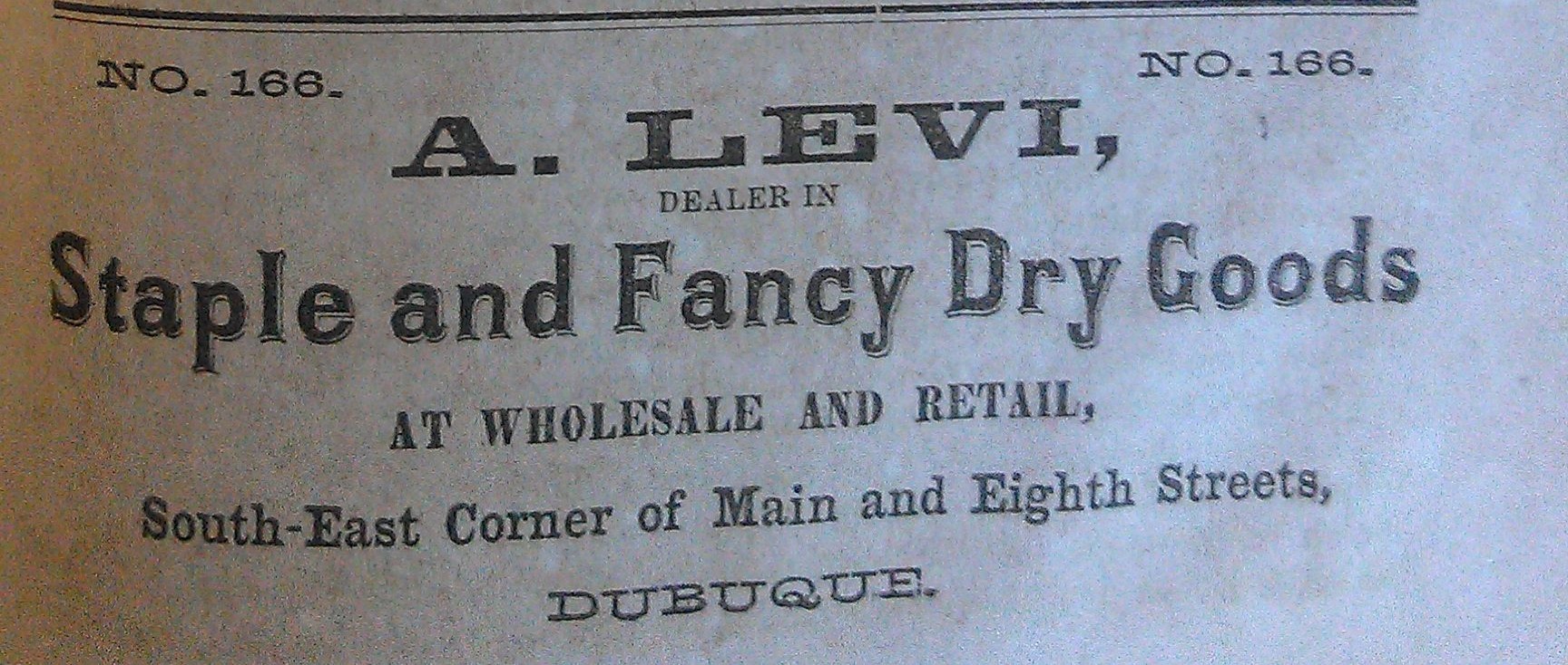 A. LEVI. The 1859-1860 Dubuque City Directory listed the corner of Main and 8th.